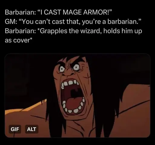 The Picard Maneuver@piefed.world to RPGMemes @ttrpg.networkEnglish · 2 months agoMage Armormedia.piefed.worldimagemessage-square15linkfedilinkarrow-up1443arrow-down13