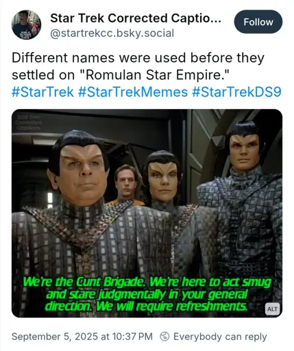 arrow-up194arrow-down1imageRolls off the tongue nicelylemmy.worldNegativeNull@lemmy.worldM to TenForward: Where Every Vulcan Knows Your Name@lemmy.worldEnglish · 1 month agomessage-square5linkfedilink