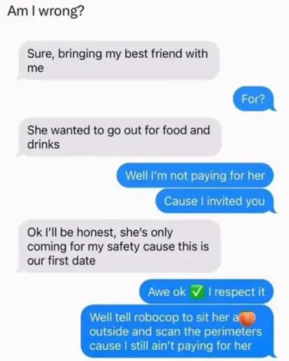 minus-squareSundraylinkfedilinkEnglisharrow-up47arrow-down7·2 months ago“Can I bring a friend?” “Um, I’d rather they stayed home. And well, I didn’t want to say anything earlier, but I kind of wanted to stay home, too. You have fun though!”