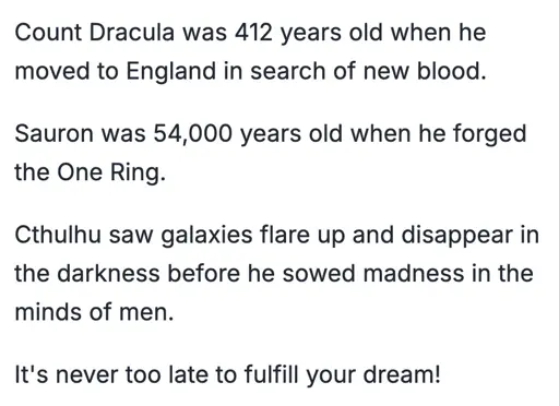 cm0002@libretechni.ca to Funny@sh.itjust.worksEnglish · 8 hours agoIt's never too late to fulfill your dream!lemmy.mlimagemessage-square7linkfedilinkarrow-up1302arrow-down14cross-posted to: funny@lemmy.ml