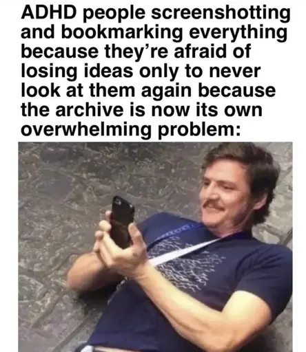 Not just screenshots. I have literally hundred thousand photos of which about 50% are neatly in the correct folders and the rest are a complete mess that I don’t even want to look at. If I spent like 5 minutes each day organizing them I’d sort it out in no time but I just can’t get myself doing it.