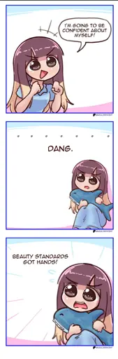 So basically, it’s hard to have self confidence with these beauty standards is what’s saying.