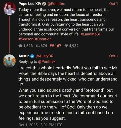 If the pope got ratio’d by some guy mansplaining the bible to him, Christianity would have another schism