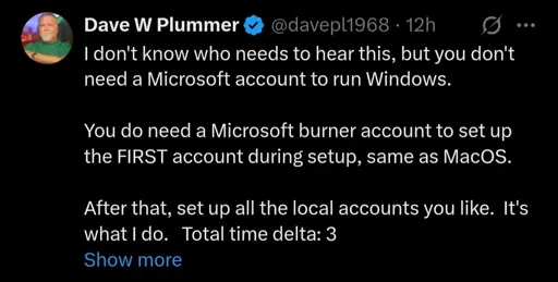 He is of the opinion that Windows 11 is trying to force people to throw away perfectly good machines because of the stupid TPM requirement, as you can tell by his videos from a few months ago
