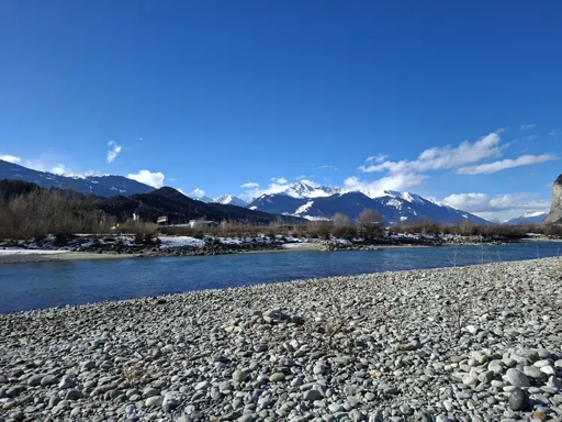 could be the chilliwack river in british columbia. there are also some places in austria that look like this. the sheer cliff on the right is an interesting landmark, as is the road signs. got it in a higher res?